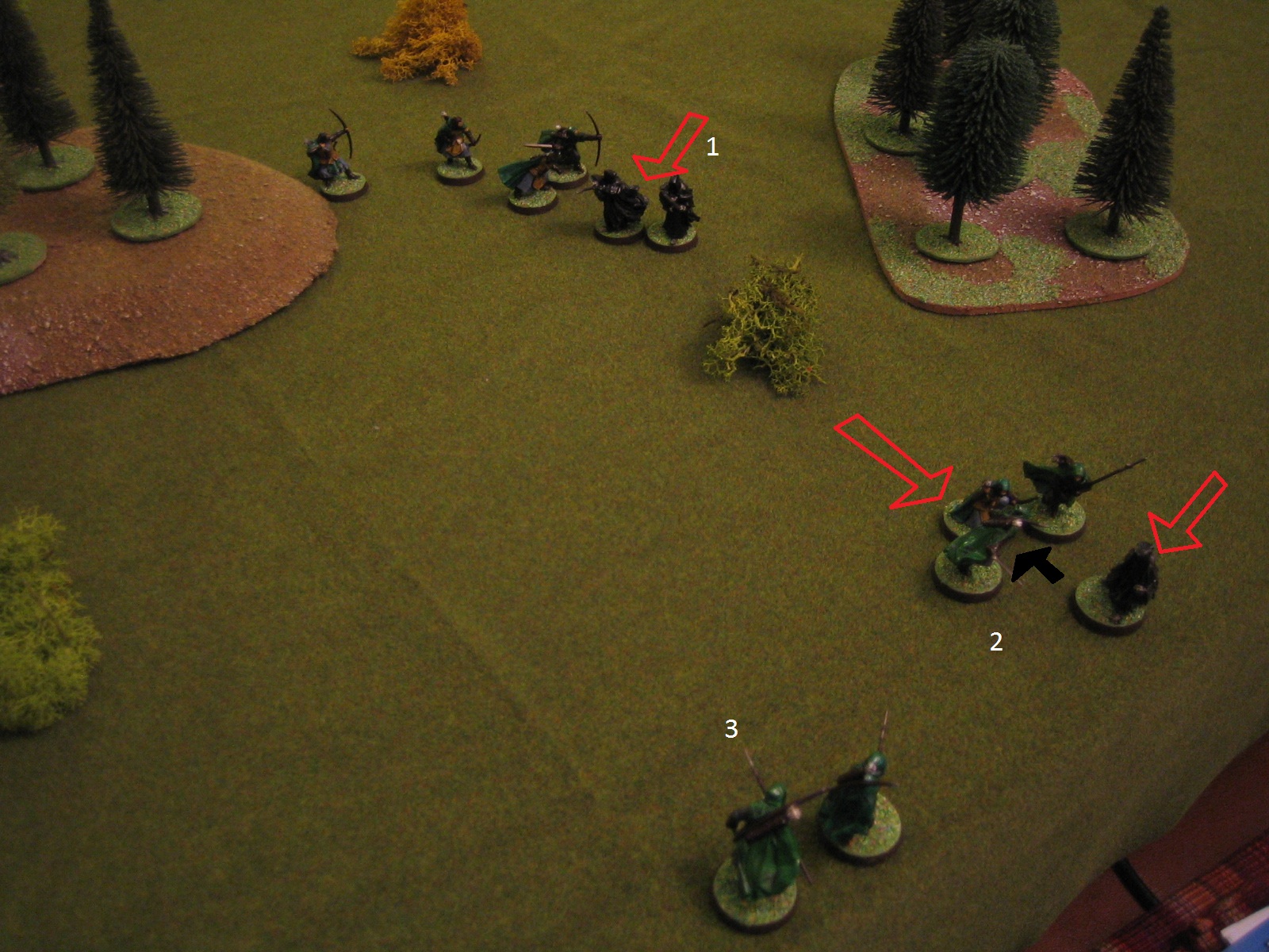2) Another shock! Both the Dunedain who have been attracted by the noise of battle were clearly not expecting to stumble across a Ringwraith and fail their courage checks to charge.